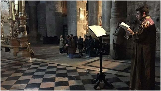 В числе первых у Гроба Господня оказались несколько десятков украинских паломников, приехавших в Старый город прямо из аэропорта и в ночи прошедших «Путём скорби» – по иерусалимской улице Виа Долороза.