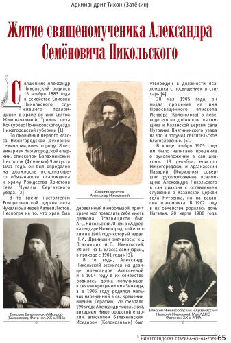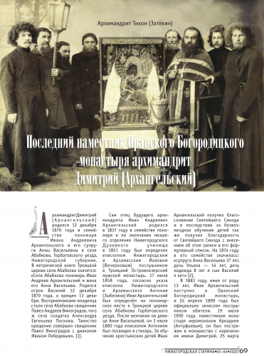 Наместник Нижегородского Вознесенского Печерского мужского монастыря, заместитель руководителя Нижегородского отделения ИППО архимандрит Тихон (Затёкин) опубликовал в журнале свои новые статьи: «Житие священномученика Александра Семёновича Никольского» и «Последний наместник Оранского Богородицкого монастыря архимандрит Димитрий (Архангельский)».
