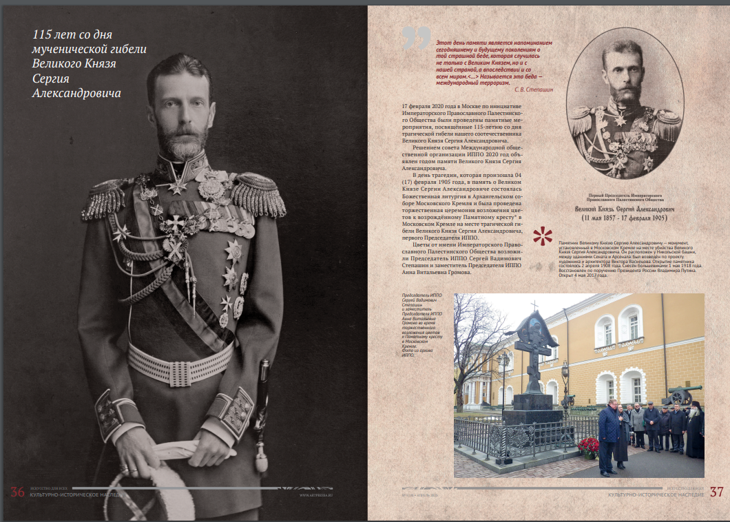 В майском номере журнала «Искусство для всех» опубликована статья, посвящённая 115-летию мученической гибели первого Председателя ИППО Великого князя Сергия Александровича.