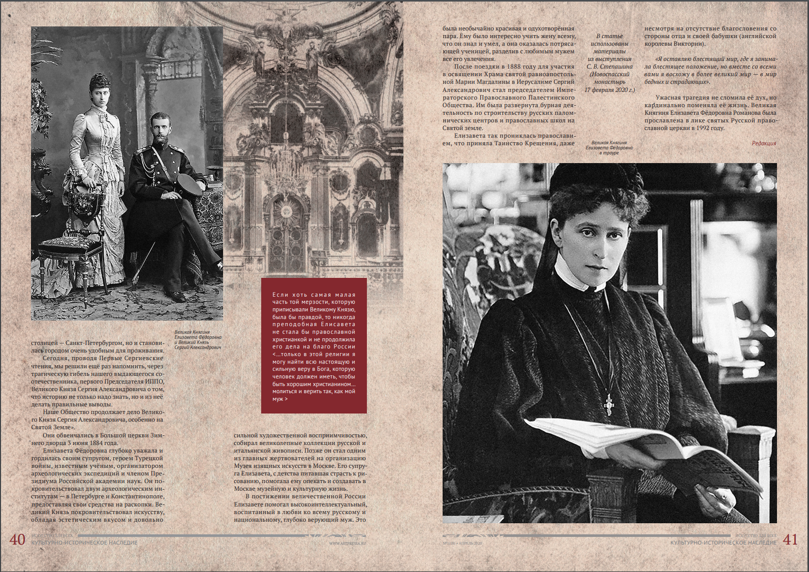 Статья, посвящённая 115-летию мученической гибели Великого князя Сергия Александровича, в новом выпуске журнала «Искусство для всех»