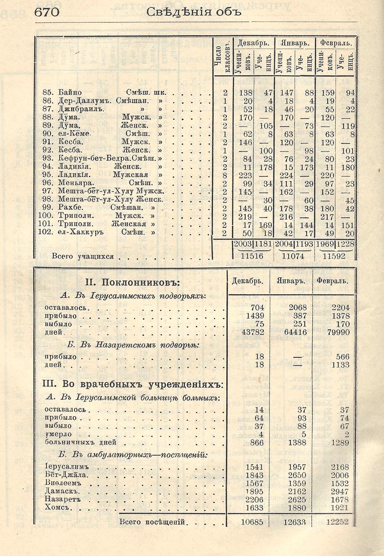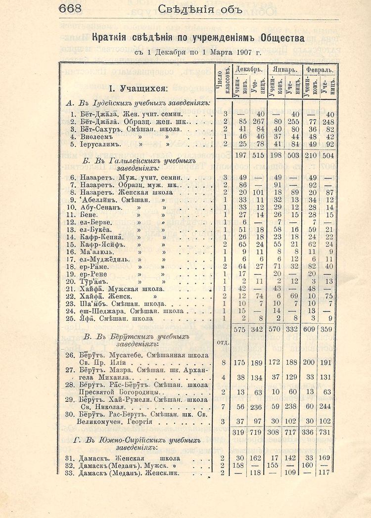 Сведения о школах Императорского Православного Палестинского Общества с 1 декабря 1906 года по 1 марта 1907 года были опубликованы в "Сообщениях Императорского Православного Палестинского Общества" том XVIII вып.3-4 1907 года, с.668-670.