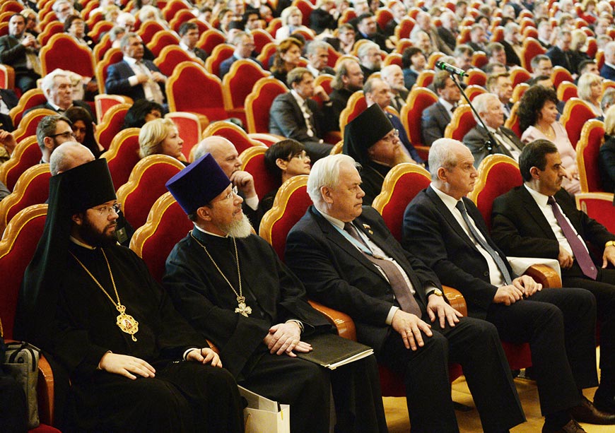 Председатель ИППО Сергей Степашин приветствовал собравшихся и огласил приветствия Президента России В. В. Путина и председателя Правительства Д. А. Медведева. В президиуме заседания также присутствовали: Патриарший наместник Московской епархии митрополит Крутицкий и Коломенский Ювеналий; министр культуры Российской Федерации В. Р. Мединский; председатель Попечительского совета ИППО, председатель правления и президент ПАО «Транснефть» Н. П. Токарев.