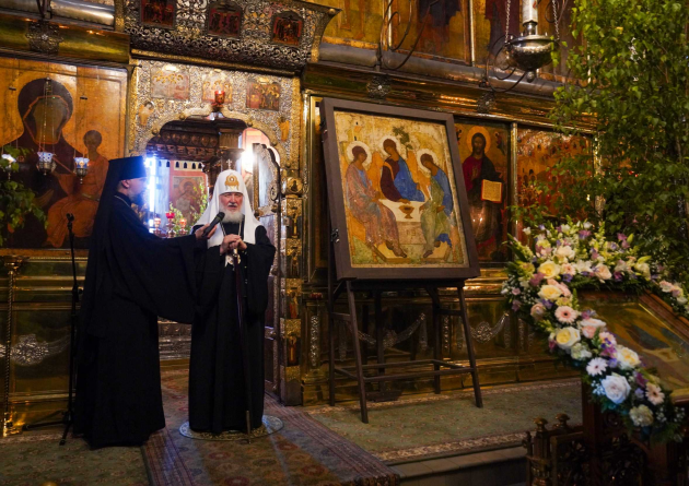 22 июня 2024 года, в канун праздника Святой Троицы (Пятидесятницы), Святейший Патриарх Московский и вся Руси Кирилл возглавил встречу иконы Святой и Живоначальной Троицы, написанной преподобным Андреем Рублевым, в Свято-Троицкой Сергиевой лавре и всенощное бдение в Троицком соборе обители.