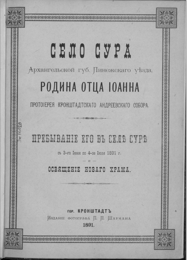 14 июня Святейший Патриарх Кирилл совершит Божественную литургию на родине святого праведного Иоанна Кронштадтского в селе Сура (Пинежский район Архангельской области). Богослужение начнется в 10.00 в Успенском соборе Сурского Иоанновского женского монастыря.