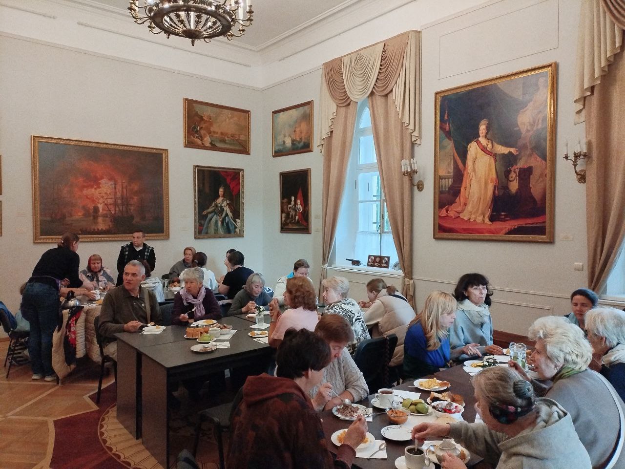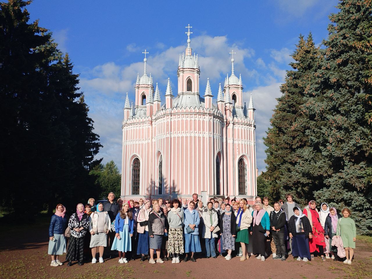 Субботнее утро в Санкт-Петербурге началось с посещения Чесменского дворца и возведенной при нем в 1777-1780 гг. церкви в честь Рождества святого Иоанна Крестителя. Познакомившись с историей дворцового ансамбля и позавтракав в одном из корпусов Чесменского дворца, паломники поклонились ковчегу с частицей мощей святого Иоанна Предтечи, после чего оправились в бухту Владимирская на Ладожском озере.