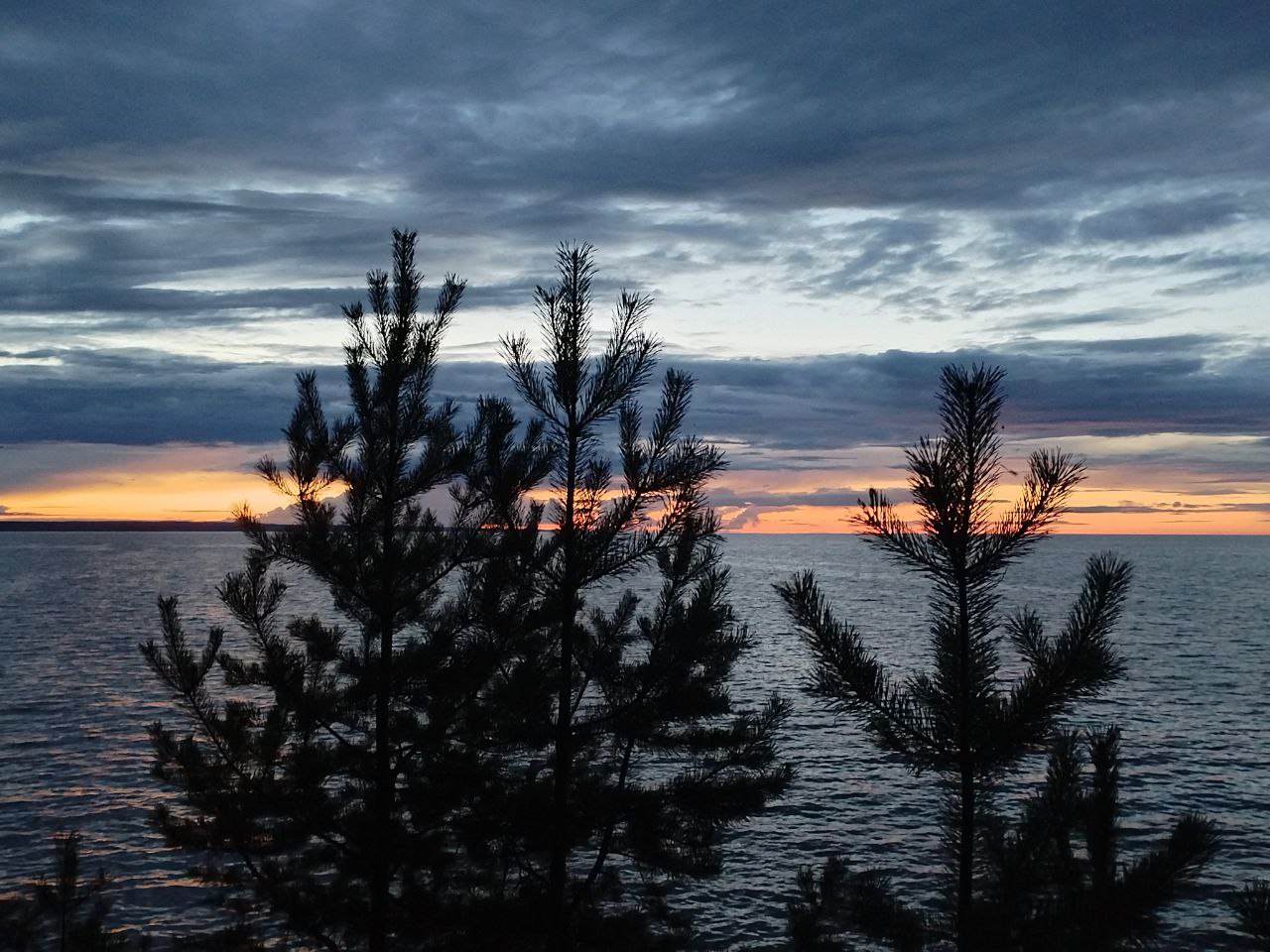 Вечером паломники молились за всенощным бдением, которое возглавил архимандрит Александр в сослужении монастырской братии и игумена Серафима (Кравченко). По окончании богослужения – ужин, после которого мы имели возможность самостоятельно прогуляться по острову и полюбоваться закатом…