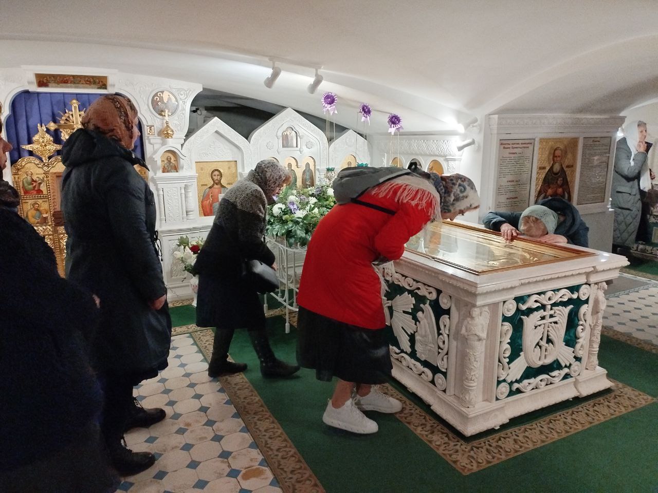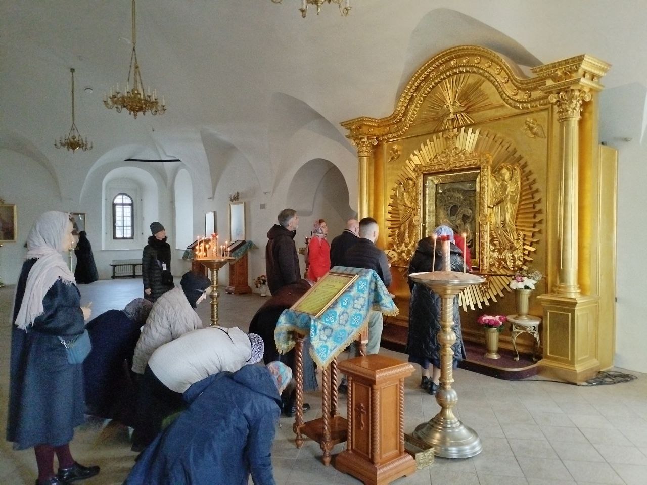 Паломники перед образом Божией Матери "Тихвинская"