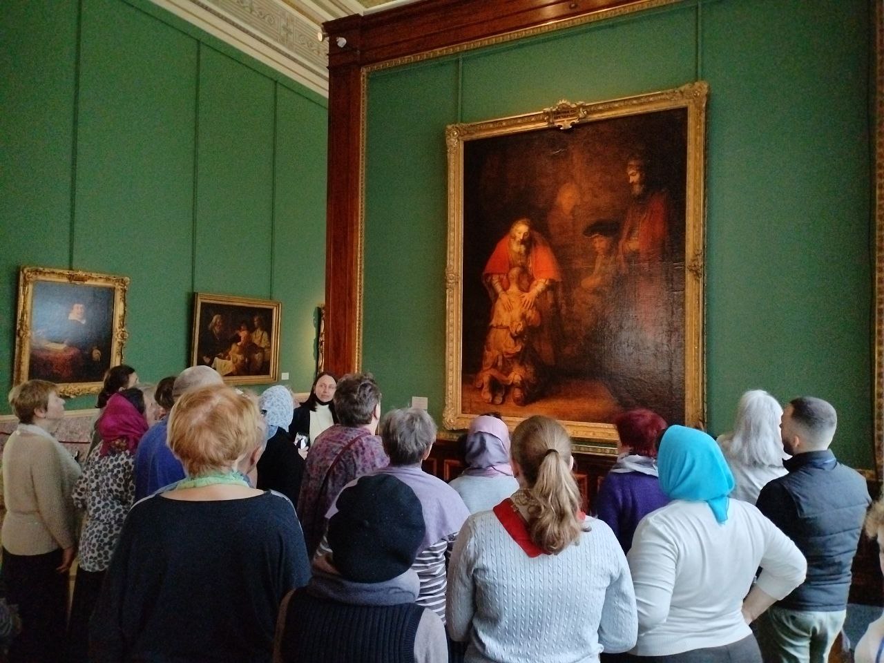 Эрмитаж. Паломники перед картиной Рембрандта "Возвращение блудного сына"