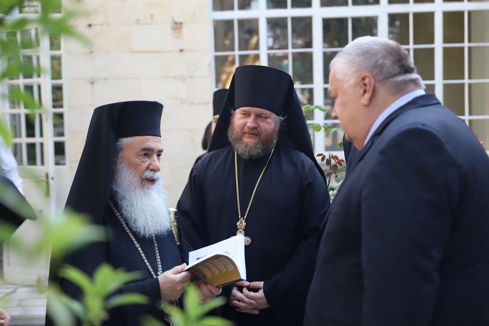 Упомянув, что уже без малого 180 лет Русская духовная миссия несет свое служение на Святой Земле, он подчеркнул: «Святая Земля – это исток нашей спасительной веры и место рождения Церкви Христовой. Мы с глубоким уважением относимся к Иерусалимской Церкви как Матери всех христианских Церквей, имеющей здесь непрерывное присутствие уже 2000 лет. Мы свидетельствуем свое почтение Предстоятелю Иерусалимского Патриархата Блаженнейшему Патриарху Феофилу за его огромный вклад в дело сохранения христианского присутствия на Святой Земле. Русская духовная миссия как церковно-дипломатическое представительство видит свое призвание в том, чтобы содействовать делу укрепления христианской жизни на том месте, где Сам Царь неба и земли умер за нас на Голгофе».