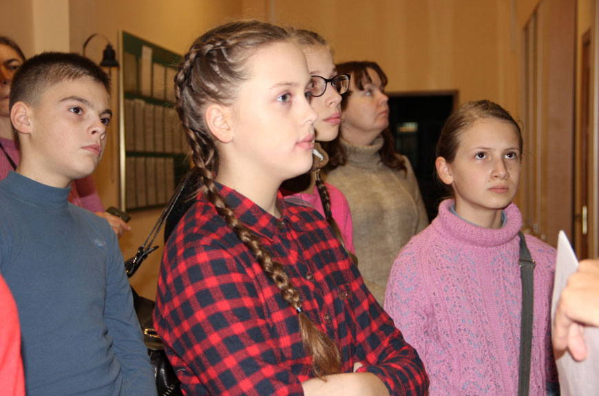 Общение со школьниками проходило на фоне выставки «Россия при Императоре Николае II в фотографиях Сергея Прокудина-Горского». Действительный член Тульского отделения ИППО Марина Михалёва отметила, что эти фотографии помогают понять, какой была российская держава в пору своего расцвета в начале XX века. Школьникам были приведены статистические данные, которые были восприняты подростками заинтересованно и живо. Им была предоставлена возможность рассмотреть издания 1910-х гг., благодаря которым жизнь русского общества того времени приобрела для них новые краски и оттенки.