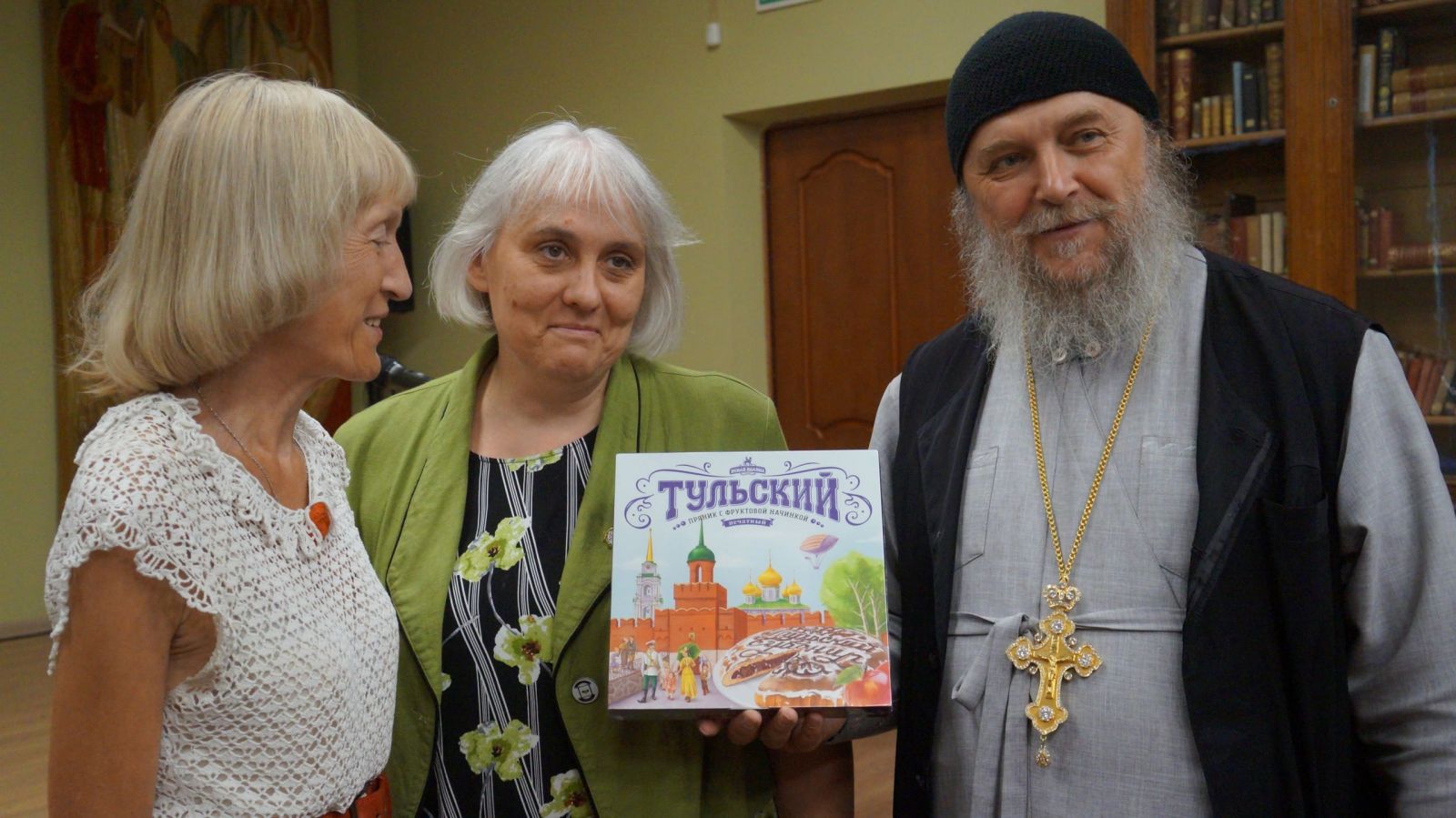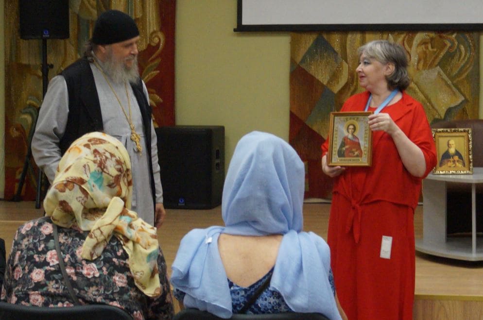 На память протоиерею Геннадию Беловолову члены регионального отделения ИППО подарили икону целителя Пантелеимона из Тульского Пантелеимонова монастыря и тульский пряник.