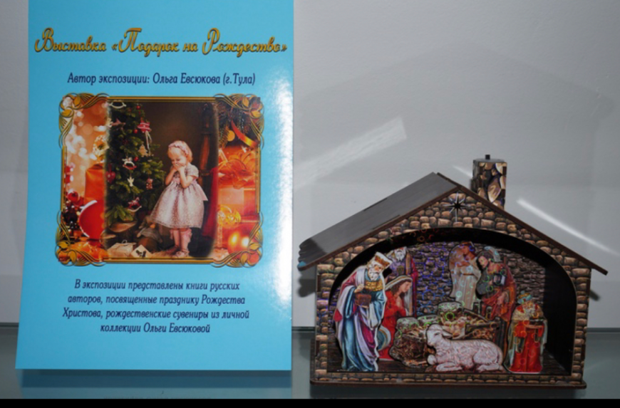 Ежегодно в преддверии Рождества на разных городских выставочных площадках действительный член Тульского отделения ИППО Ольга Евсюкова оформляет выставки из своих личных собраний книг и предметов мелкой пластики.
