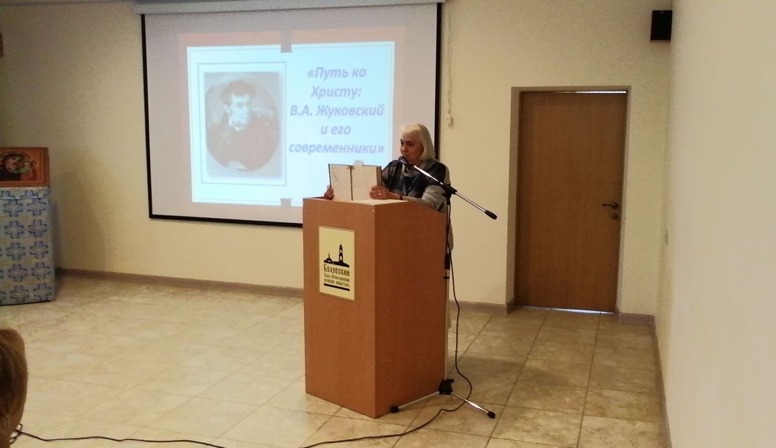 С большим интересом участники чтений заслушали выступление главного библиографа Центра книжных памятников и краеведения Тульской областной научной библиотеки, координатора Тульского отделения ИППО М. В. Шуманской, представившей участникам чтений журнал «Русский архив» за 1869-1876 гг., где были опубликованы письма и воспоминания о В. А. Жуковском. Она остановилась на религиозном аспекте биографии поэта и его близких.