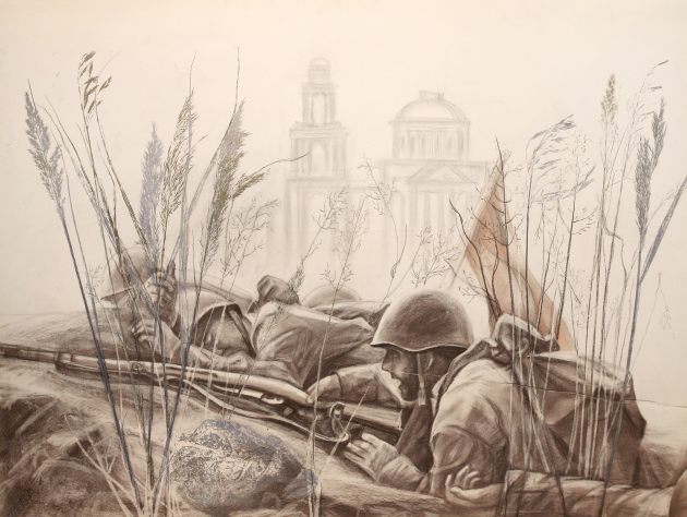«Ради жизни на земле» – так называется цикл работ разных лет, представленных на выставке. Это и совсем недавние графические листы серии «Ржев. Помним», и «классика» Людмилы Юга – крупноформатные офорты о героях фронта и тыла.