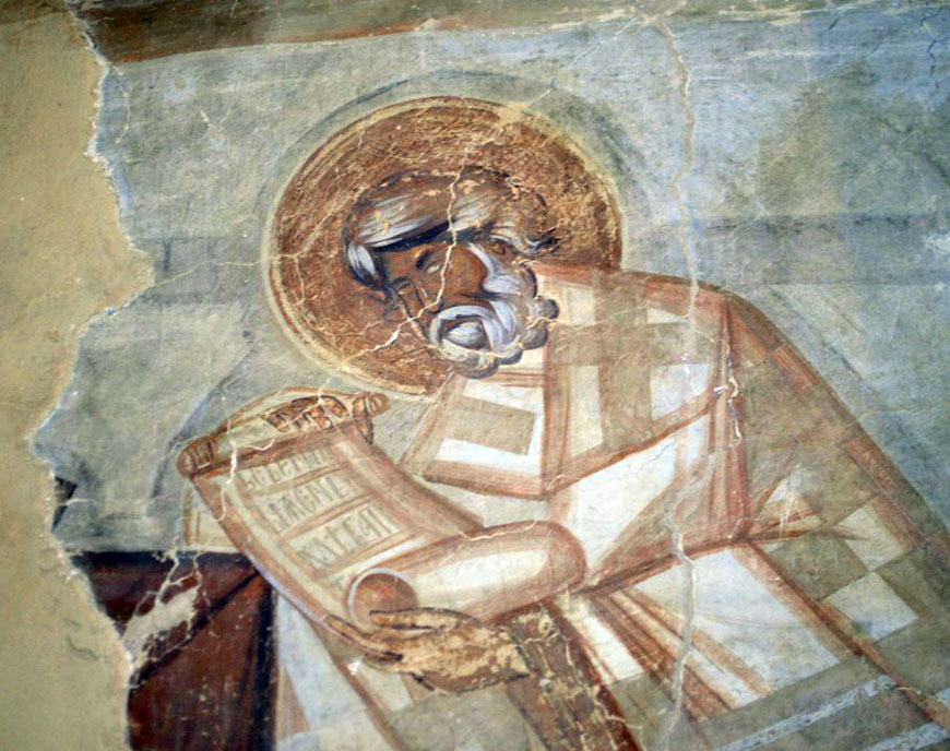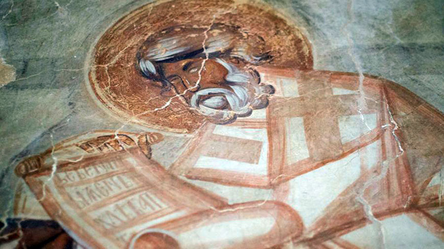 «Святой Акакий», фреска в Троицком приделе. Храм Спаса Преображения на Ильине. Феофан Грек, 1378 год. © РИА Новости / Александр Филиппов