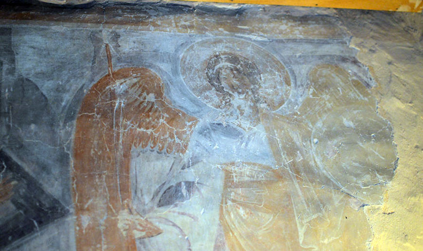 «Это не аварийное, а подвижное состояние», – уточняет эксперт по изучению объектов культурного наследия Новгородского музея Банникова. Подвижность фрески – это когда участки штукатурки отходят от стены, но не отваливаются от неё.