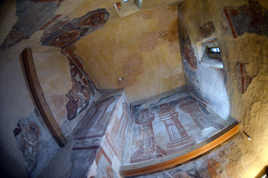 Интерьеры храма Спаса на Ильине, вид с лесов. © РИА Новости / Александр Филиппов
