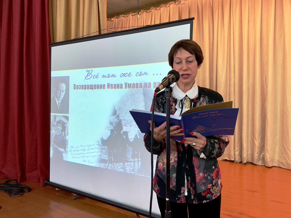 Наталья Цуканова познакомила собравшихся с книгой «Все тот же сон…», куда вошли стихи Ивана Умова и его воспоминания, а также уникальные фотографии и письма, предоставленные родственниками поэта, живущими в России и за рубежом. Очень ценны воспоминания поэта, где он описывает встречи с видными деятелями русской культуры и членами царской семьи.