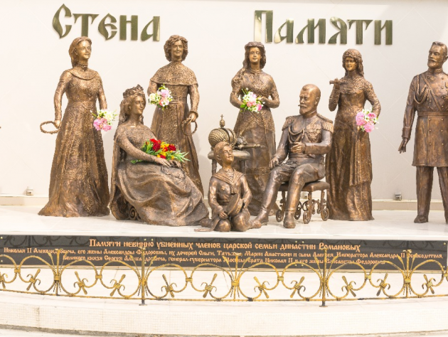 На композиции в полный рост изображены все члены Царской семьи, погибшие как в годы революции, так и от рук террористов: император Николай II, его жена Александра Фёдоровна, дочери Ольга, Татьяна, Мария и Анастасия, а также Цесаревич Алексей, Император Александр II.