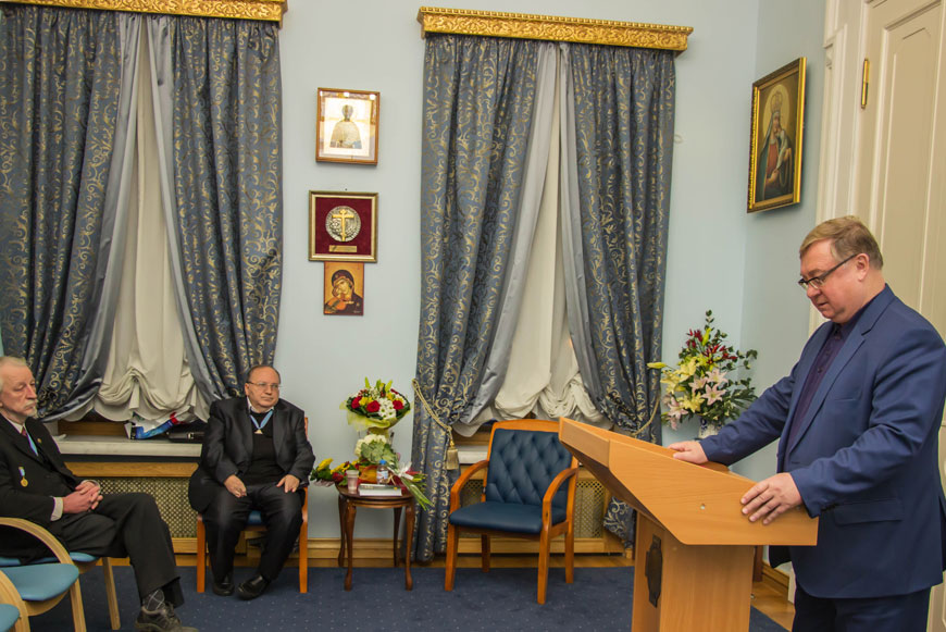 После выступления С.В. Степашин под аплодисменты участников вручил Н.Н. Лисовому высшую награду Общества – почётный знак ордена преподобномученицы Великой Княгини Елисаветы Феодоровны.