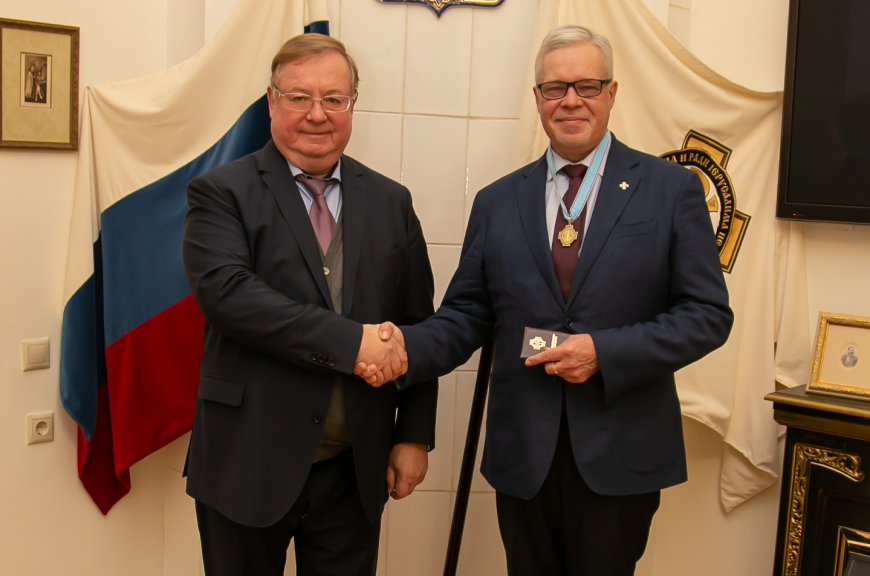 По завершении дружественной беседы Сергей Степашин тепло поблагодарил Сергея Мельникова за многолетнее плодотворное сотрудничество, участие в деятельности старейшей международной общественной организации и вручил ему членский билет и исторический знак действительного члена ИППО. Решение о принятии С.А. Мельникова в ряды действительных членов ИППО состоялось на заседании Совете Общества от 4 июня 2021 года.