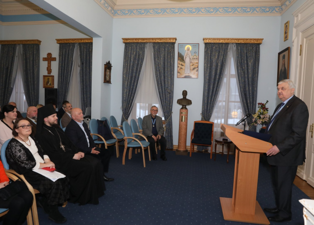 С приветственным словом также выступил председатель Наблюдательного совета «Музея памяти семьи Императора Николая II» Виктор Семёнов, который отметил необычайно эффективную работу научно-редакционного совета по изданию многотомного собрания трудов святителя равноапостольного Николая Японского.