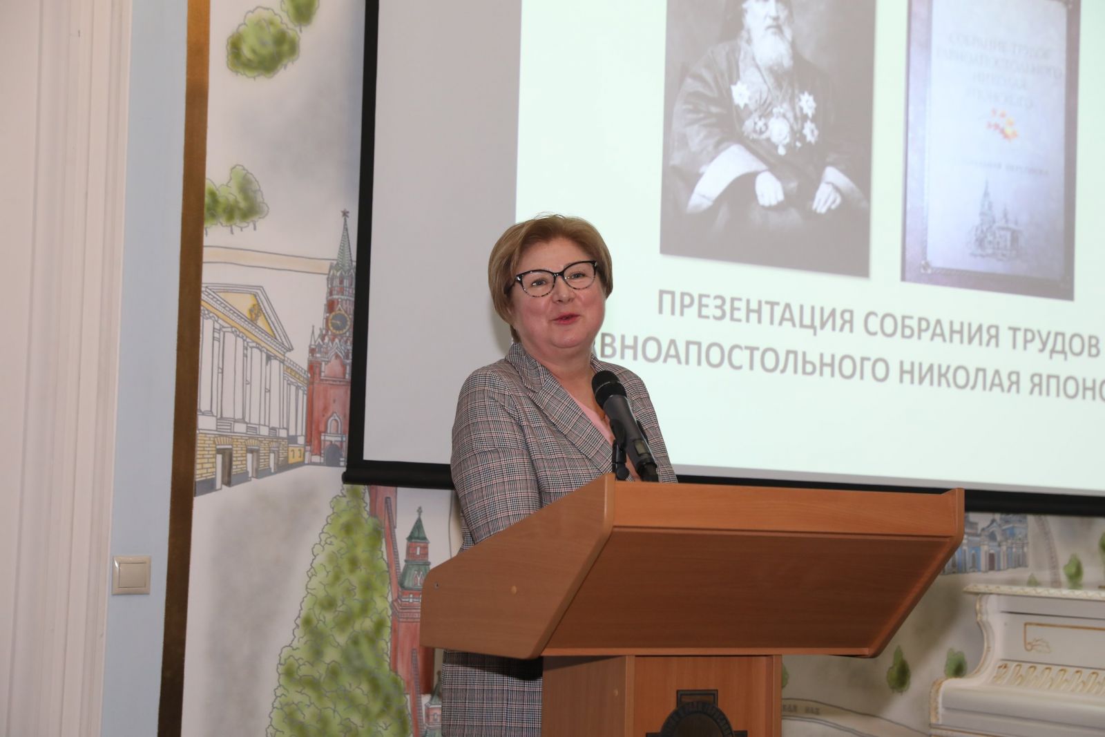 Далее выступила Ирина Смирнова, действительный член ИППО, научный редактор трудов святителя Николая Японского, ведущий научный сотрудник Института российской истории РАН. Она отметила, что научно-издательский коллектив проделал уникальную работу по сбору, изучению и публикации трудов святителя Николая Японского, как по организации своей работы, так и по содержанию. Выступающая особо отметила деятельность по созданию комментариев.