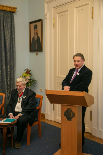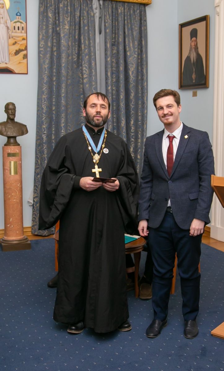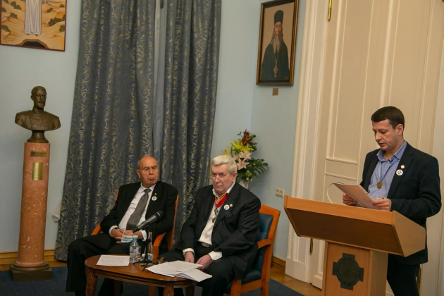 В соответствии с шестым пунктом повестки дня собрания состоялось вручение членских билетов и знаков Общества, а также памятного знака великого князя Сергея Александровича священнику Иоанну Депутатову, А.А. Анисимову, П.В. Евдокимову (награда вручена супруге О. Евдокимовой), Д.Ю. Янину.