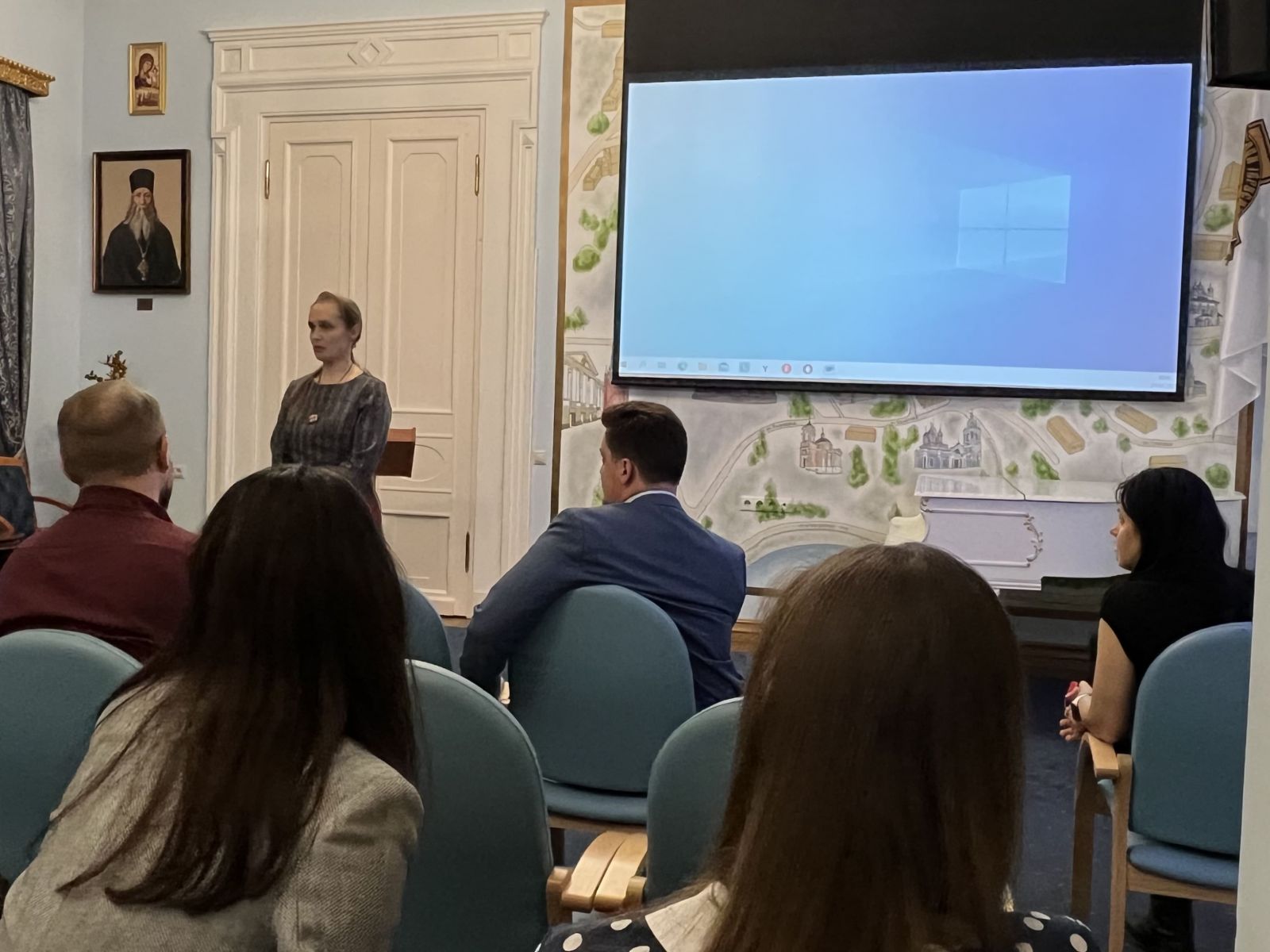 После просмотра состоялась беседа с первым Вице-президентом Общенациональной программы «В кругу семьи», генеральным директором одноимённого театрального агентства Татьяной Столоповой, которая представила команду создателей фильма и рассказала членам секции о съёмочном процессе.