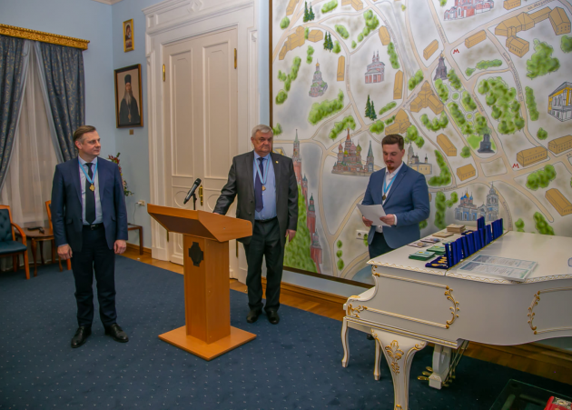 После приветствий состоялась торжественная церемония вручения Почётных знаков ИППО активистам Московского регионального отделения Общества, которую провёл Управляющий делами ИППО Даниил Бурдыга. В церемонии награждения приняли участие Георгий Веренич и Олег Шабуневич, которые вручили Почётные знаки и грамоты Общества действительным членам ИППО, активно работавших в 2022 году.
