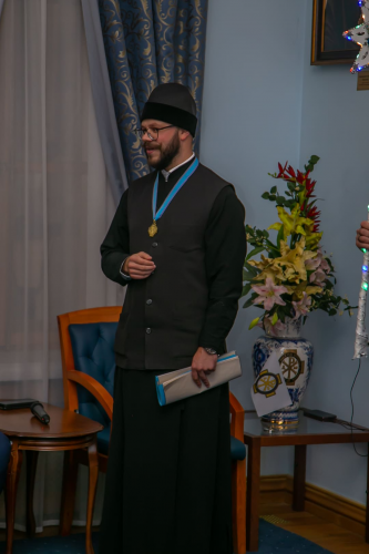 Далее к присутствующим в зале действительным членам ИППО обратился Олег Шабуневич, который сердечно всех поздравил с наступающим Старым Новым годом, поблагодарил всех участников приёма за проведенную работу в Обществе в 2022 году, пожелал здоровья и дальнейших успехов в работе на благо России и Императорского Православного Палестинского Общества.