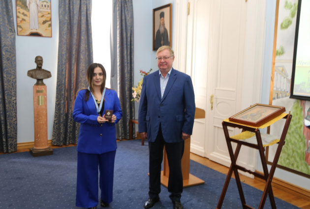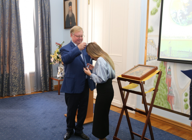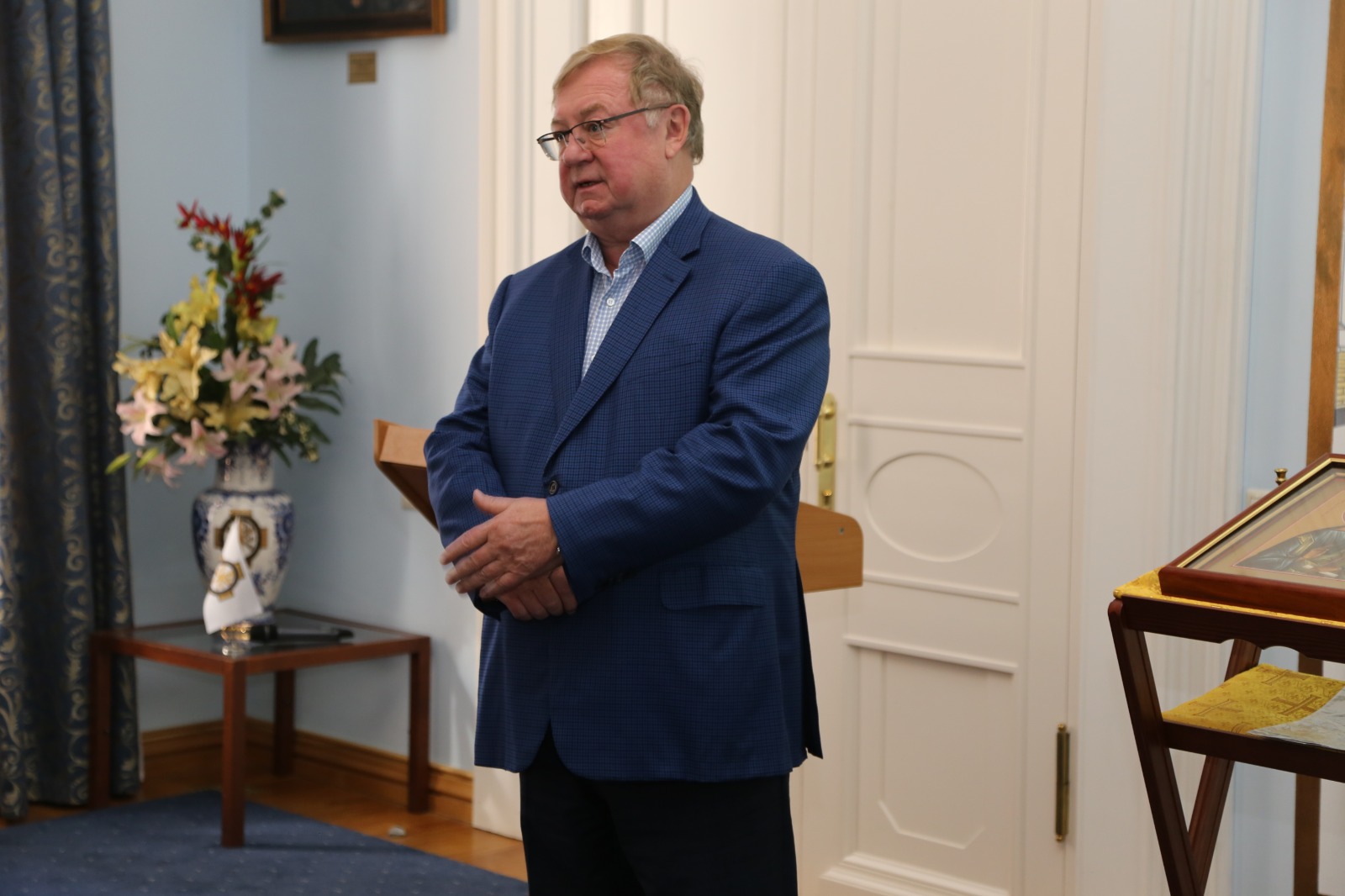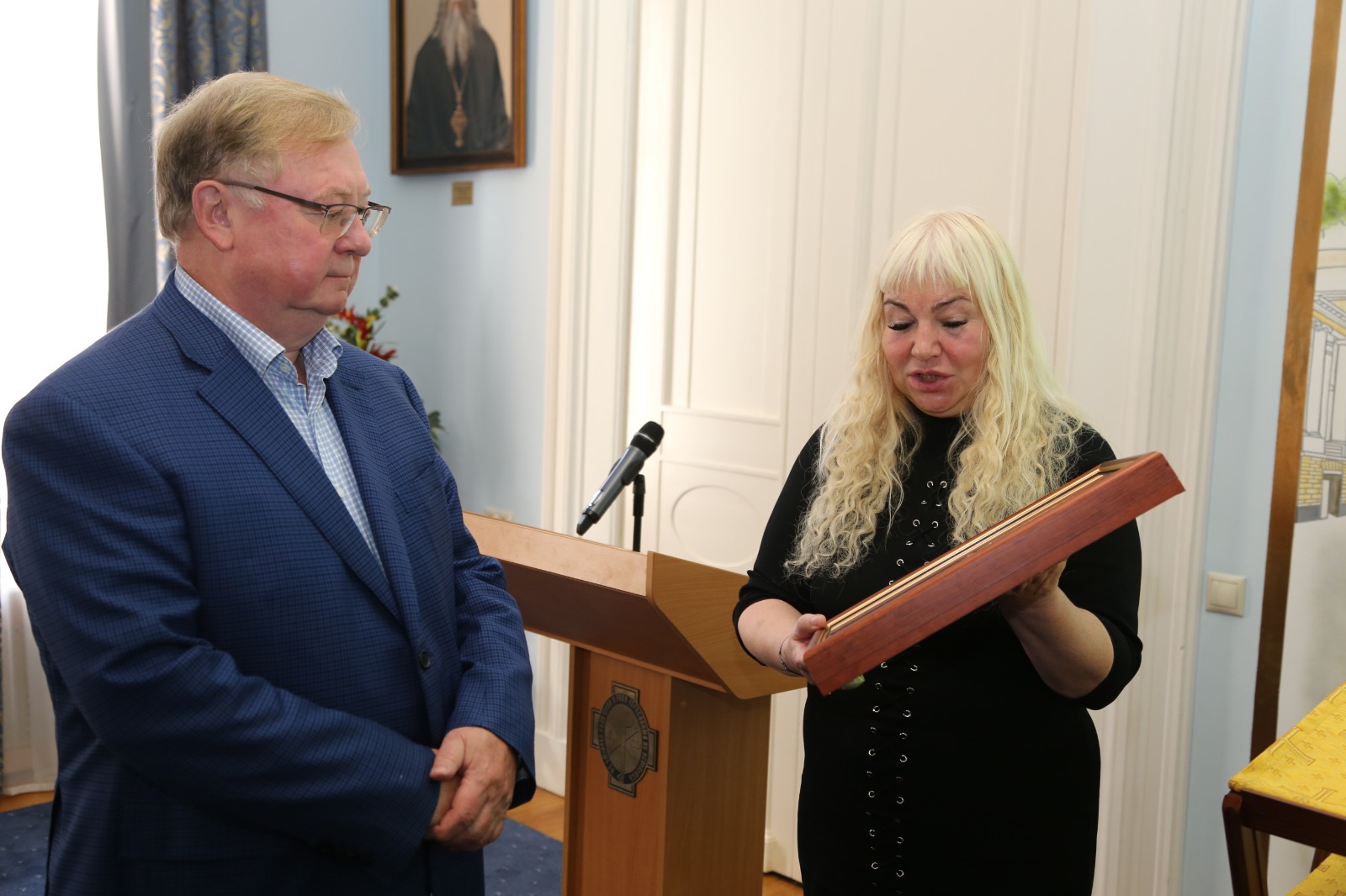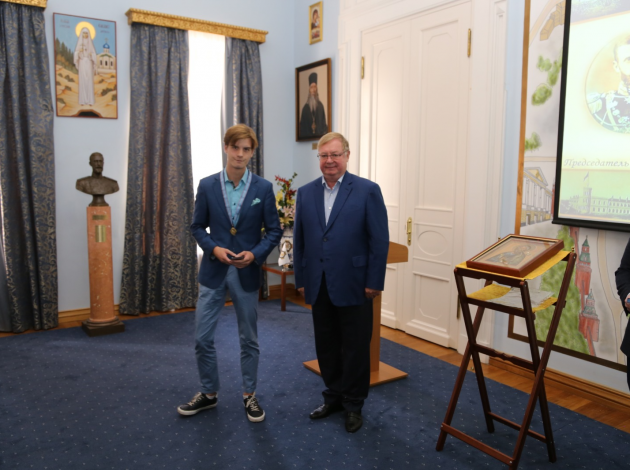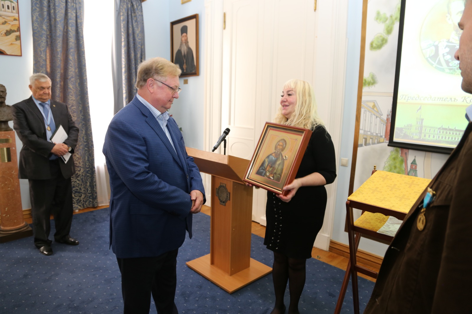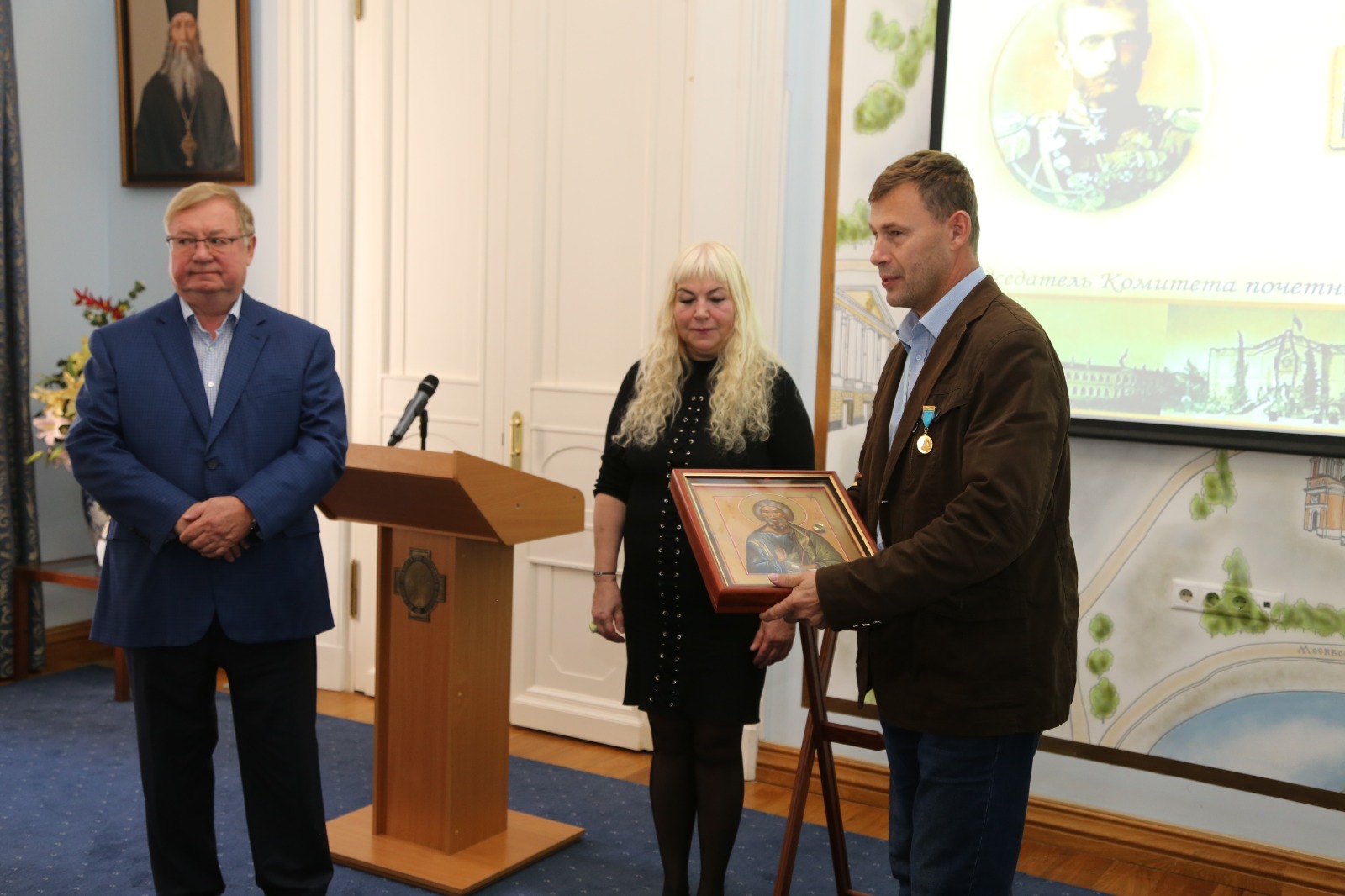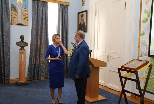В присутствии Председателя ИППО Сергея Степашина и многочисленных гостей, Президент фонда святого Вонифатия передала икону святого апостола Андрея будущим паломникам, которые пройдут весьма длинным маршрутом.