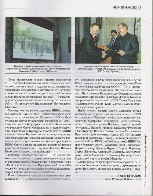 Статья посвящена премьерному показу документально-хронологического фильма «Торжественное заседание, посвященное 140-летию Императорского Православного Палестинского Общества».