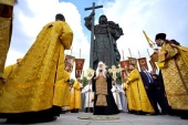 В День Крещения Руси Предстоятель Русской Церкви совершил молебен у памятника равноапостольному князю Владимиру в Москве