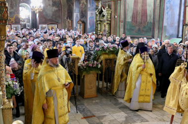 На сугубой ектении были вознесены молитвенные прошения об избавлении от распространения коронавирусной инфекции, а также прошение о врачах: «Призри, Владыко Человеколюбче, на жертвенный подвиг врачей наших, посли им здравие непоколебимое, силу и крепость духа, мудрость к совершению трудов во благо народа нашего и сотвори чрез них исцеление страждущим рабом Твоим, прилежно молим Ти ся скоро услыши и помилуй».