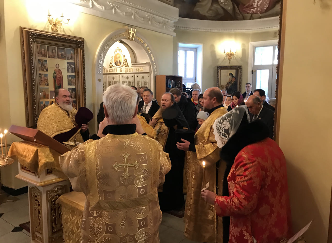 У церковного амвона руководитель Московского областного отделения ИППО Юрий Смирнов поздравил всех присутствовавших с праздником, передал приветствие и пожелание благополучия от Председателя ИППО Сергея Степашина.