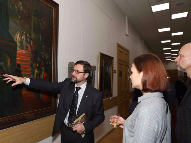Среди приглашённых был также Фёдор Георгиев – второй секретарь Департамента Ближнего Востока и Северной Африки Министерства иностранных дел Российской Федерации. Он поздравил художника с таким значимым не только для Императорского Православного Палестинского Общества, но и для истории нашего государства проектом. Так как Фёдор Вадимович 5 лет проработал в Израиле, его любимой картиной на этой выставке оказалась работа 2008 года под названием «Освящение храма во имя Святой равноапостольной Марии Магдалины в Иерусалиме в 1888 году в присутствии Московского генерал-губернатора Великого князя Сергея Александровича и Великой Княгини Елизаветы Фёдоровны».