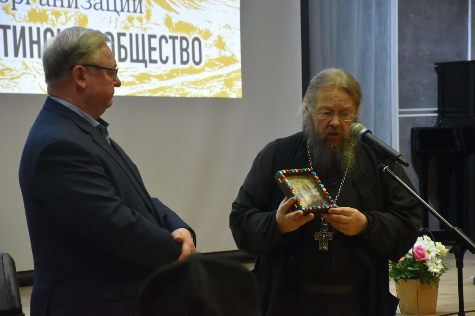 С приветственным словом к собравшимся обратился Директор Дома русского зарубежья им. А. Солженицина Виктор Москвин, Почётный член ИППО. Он отметил, что Дом русского зарубежья является для ИППО «вторым домом», руководство и сотрудники учреждения всегда рады проведению Обществом культурно-просветительских мероприятий в его стенах.