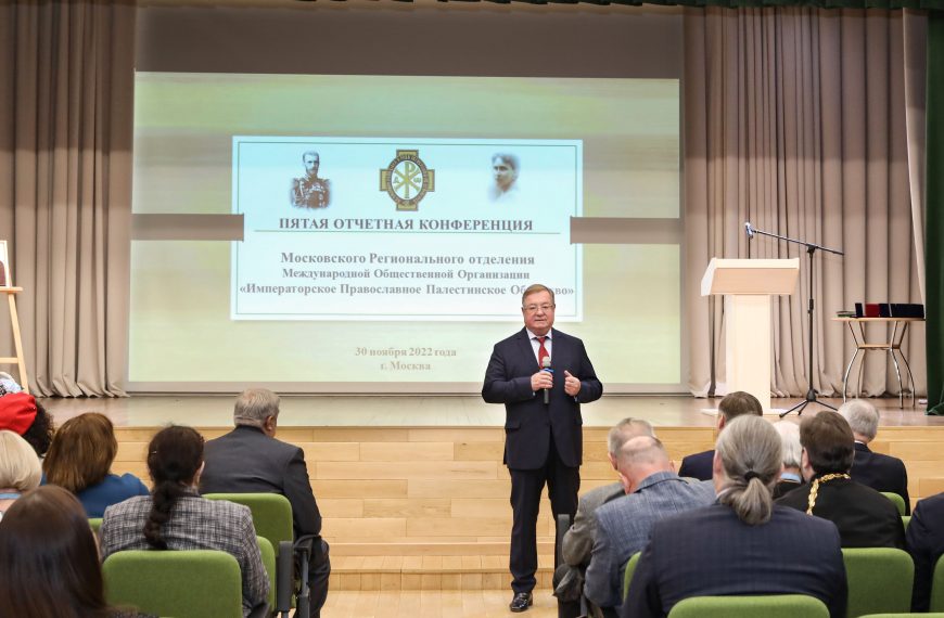С приветственным словом к участникам отчетной Конференции обратился Председатель Императорского Православного Палестинского Общества Сергей Степашин.