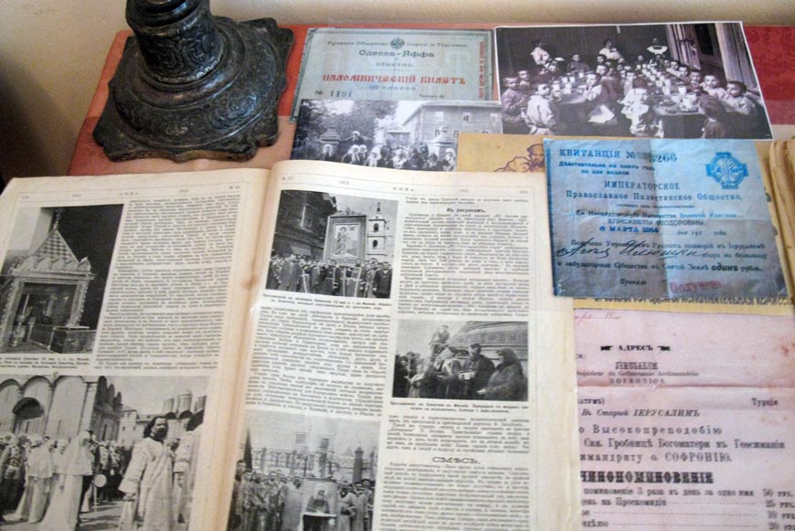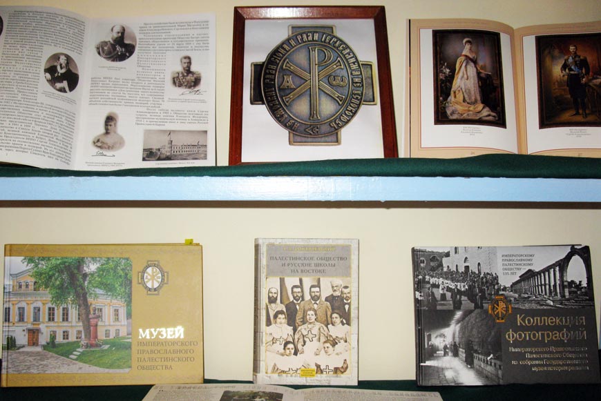 Впервые Тульское отделение ИППО привезло на выставку некоторые книги своей библиотеки. Здесь, в выставочной комнате, все желающие могут посмотреть издания, посвящённые Семье Романовых, визитам Сергея Александровича и Елизаветы Фёдоровны в разные города России, а также книги, посвящённые истории ИППО. На открытии выставки библиотечка ТО ИППО пополнилась: священник Алексий Садков, настоятель Дубенского Петропавловского храма, подарил Тульскому отделению книгу А. А. Дмитриевского «Палестинское Общество и русские школы на Востоке». А в библиотеку музея отец Алексий передал сборник проповедей члена ИППО протоиерея Михаила Бурцева (XIX в.).
