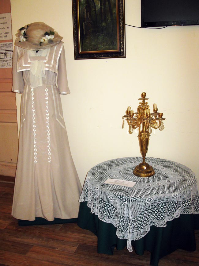 На выставке воссоздан интерьерный уголок, позволяющий оценить изящество бытовой жизни, какой она была 100 лет назад. Цель этой реконструкции проста: показать, что подлинные благотворители, оставаясь носителями культуры дворянского сословия, не играли в милосердие в духе чеховских дёшево страдающих героев: «Завтра рано утром я поеду в деревню и буду сама крестьянских детей кормить из соски» или «Я решил отдать крестьянам-косцам все свои старые костюмы и обувь». Творить благо можно, не снимая кружевной шляпки, маскарадно кутаясь в платок простолюдинки. Благотворение не терпит искусственности и снисходительности.