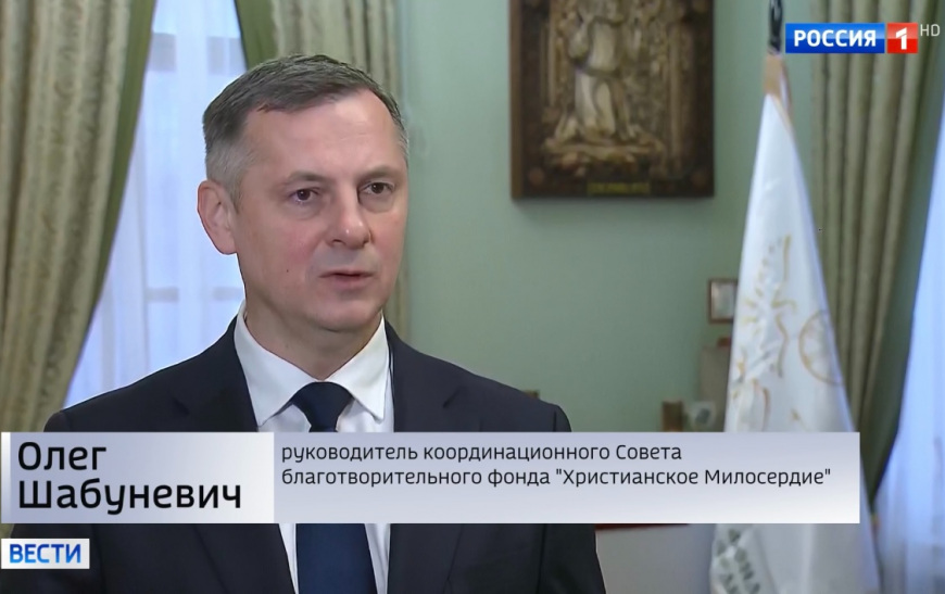 28 декабря 2024 года в прямом эфире телеканала «Россия 24» руководитель координационного совета Благотворительного фонда «Христианское милосердие», зампред Императорского Православного Палестинского Общества Олег Шабуневич рассказал об аспектах гуманитарной помощи, осуществляемой фондом «Христианское милосердие» в зоне специальной военной операции.