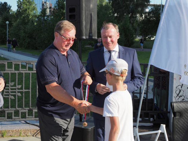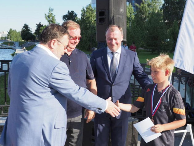Специальный приз победителю детской регаты был вручён мастером спорта международного класса, чемпионом мира и Европы, неоднократным чемпионом России по парусному спорту Евгением Васильевичем Неугодниковым.