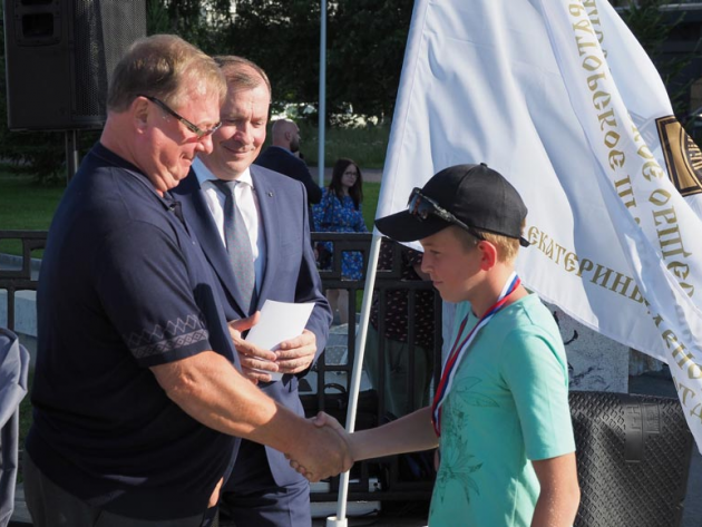 Призёрам и победителям регаты памятные кубки и медали вручали председатель Екатеринбургского отделения Императорского Православного Палестинского Общества Владимир Алексеевич Белоглазов и основатель ТК «Сима-ленд» Андрей Моисеевич Симановский.