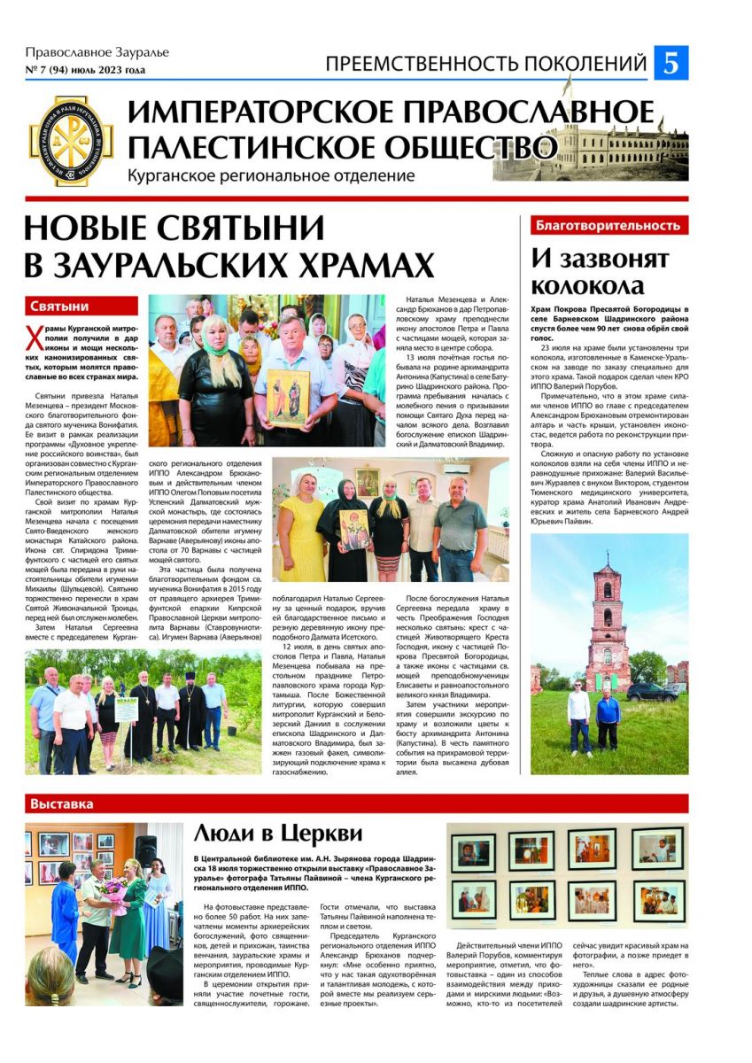 В газете «Православное Зауралье» вышел материал, посвященный деятельности Курганского отделения ИППО