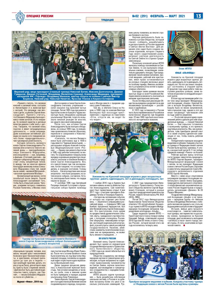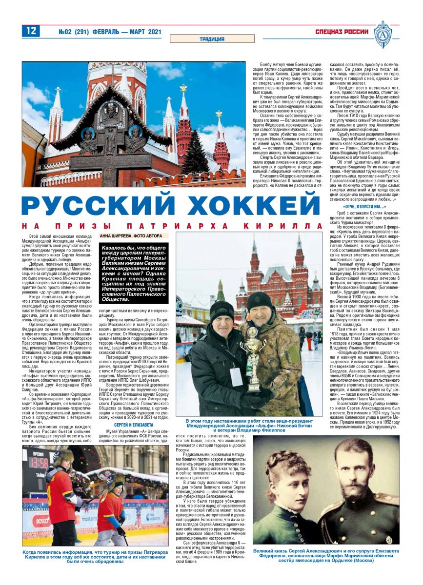 В российской общественно-политической ежемесячной газете «Спецназ» вышла статья о турнире по русскому хоккею памяти Великого князя Сергия Александровича.