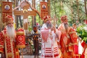 У шахты, на месте мученической кончины алапаевских мучеников, архиереи с сонмом священства почтили память безвинно убиенных и совершили молебен. Вокруг шахты пронесли ковчег с мощами преподобномученицы Елисаветы Феодоровны.