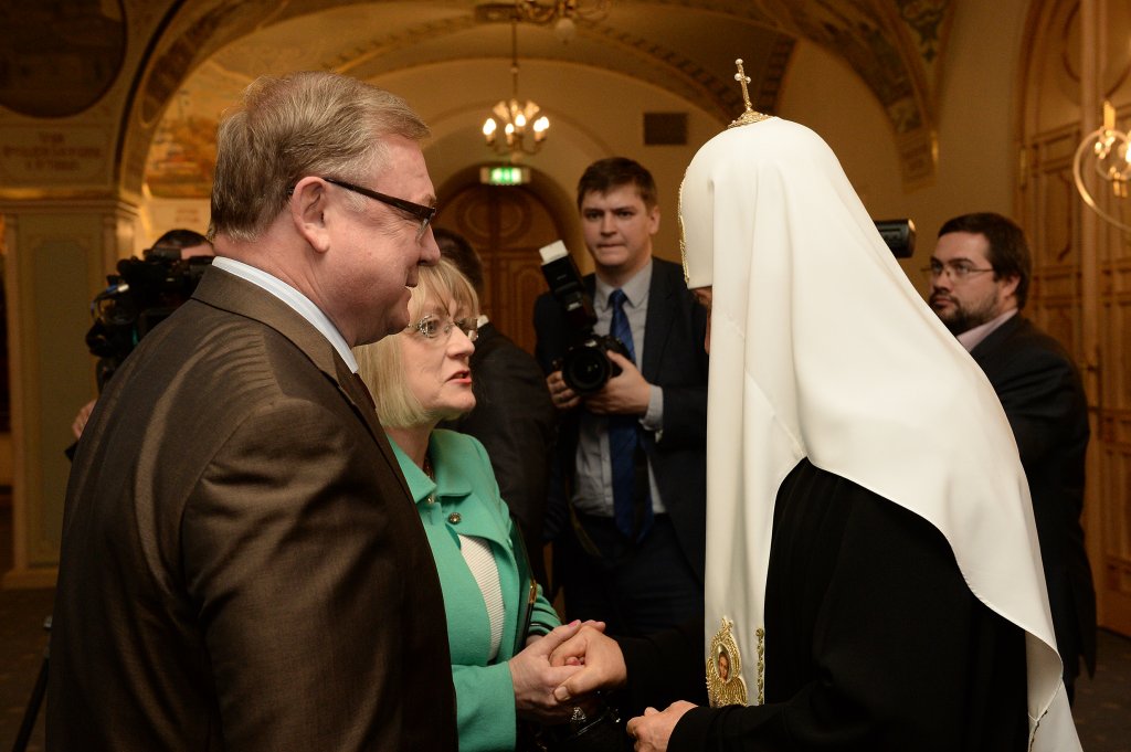 Святейшего Владыку приветствовали: председатель Совета Федерации Федерального Собрания Российской Федерации В.И. Матвиенко; руководитель Администрации Президента Российской Федерации С.Б. Иванов; первый заместитель председателя Государственной Думы Федерального Собрания Российской Федерации А.Д. Жуков; министр иностранных дел Российской Федерации С.В. Лавров; министр экономики Болгарии Божидар Лукарски; министр внутренних дел Российской Федерации В.А. Колокольцев и другие высокие лица.