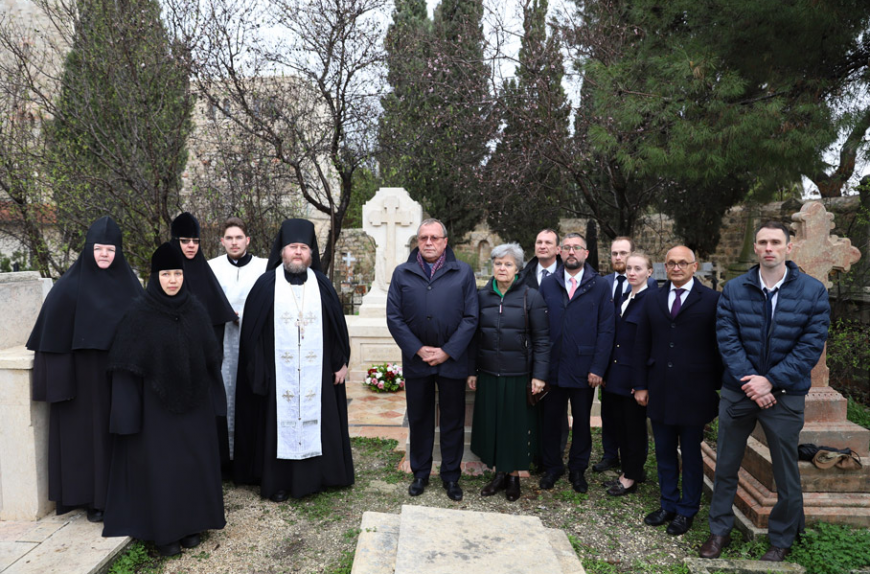 – У российских дипломатов есть обычай возлагать цветы к местам захоронений своих предшественников, умерших вдали от Родины, – пояснил Руслан Ашурбейли. – В лице Василия Фёдоровича Кожевникова мы также чтим память всех представителей дипкорпуса, внёсших большой вклад в укрепление влияния России в Святой Земле. Дипломаты XIX столетия, основатели ИППО, благотворители из Российской империи занимались формированием «Русской Палестины», а одна из важнейших задач нынешних преемников того уникального поколения – вернуть в собственность России объекты, её составляющие. Со стороны ИППО эта деятельность ведётся под непосредственным руководством Председателя Общества Сергея Вадимовича Степашина и Председателя Совета ИППО в Государстве Израиль Игоря Рауфовича Ашурбейли.