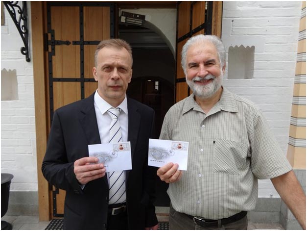 В заключение участникам были вручены памятные рамы с только что погашенными почтовыми марками. После этого состоялось коллективное фотографирование всех участников торжественной церемонии гашения юбилейной марки.